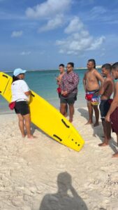 Despues di e insidentenan den yanüari, e diskushon a lanta ku si mester bini ku salbabida riba e isla. Segun Dominguez e chèns di sobrebibensia di e turistanan ku a hoga lo tabata mas haltu si tabatin salbabida. E instruktor ta splika ku komo salbabida bo ta siña monitoriá e hendenan ku ta den awa: “Bo ta konta kuantu hende tin den awa i asina falta unu, bo ta drenta den akshon.” Tambe un salbabida tei mas lihé i por kuminsá duna promé ousilio mesora, te ora ambulans yega.